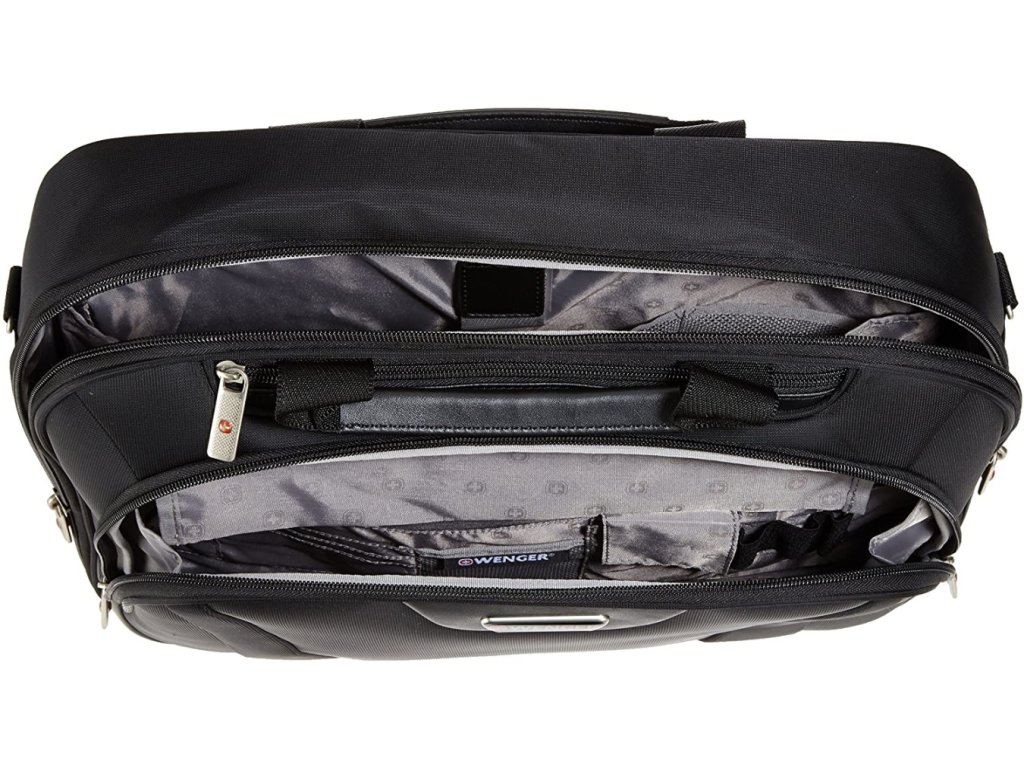 Taška na notebook Wenger deluxe 17 "z kolekcie má z prednej strany vrecko na zipsy s organizérom V hlavnej časti je polstrovaný priestor na notebook s pásikom na pripevnenie a nastavenie veľkosti, sieťované priehradky na drobnosti a vrecko. Taška má nastaviteľný odnímateľný popruh na rameno a navliekacie pásik slúžiaci k jednoduchému pripevnenie na rukoväť kufra. Vhodné do práce pre každého moderného muža.
