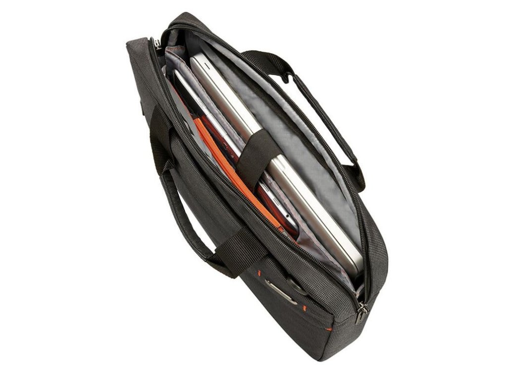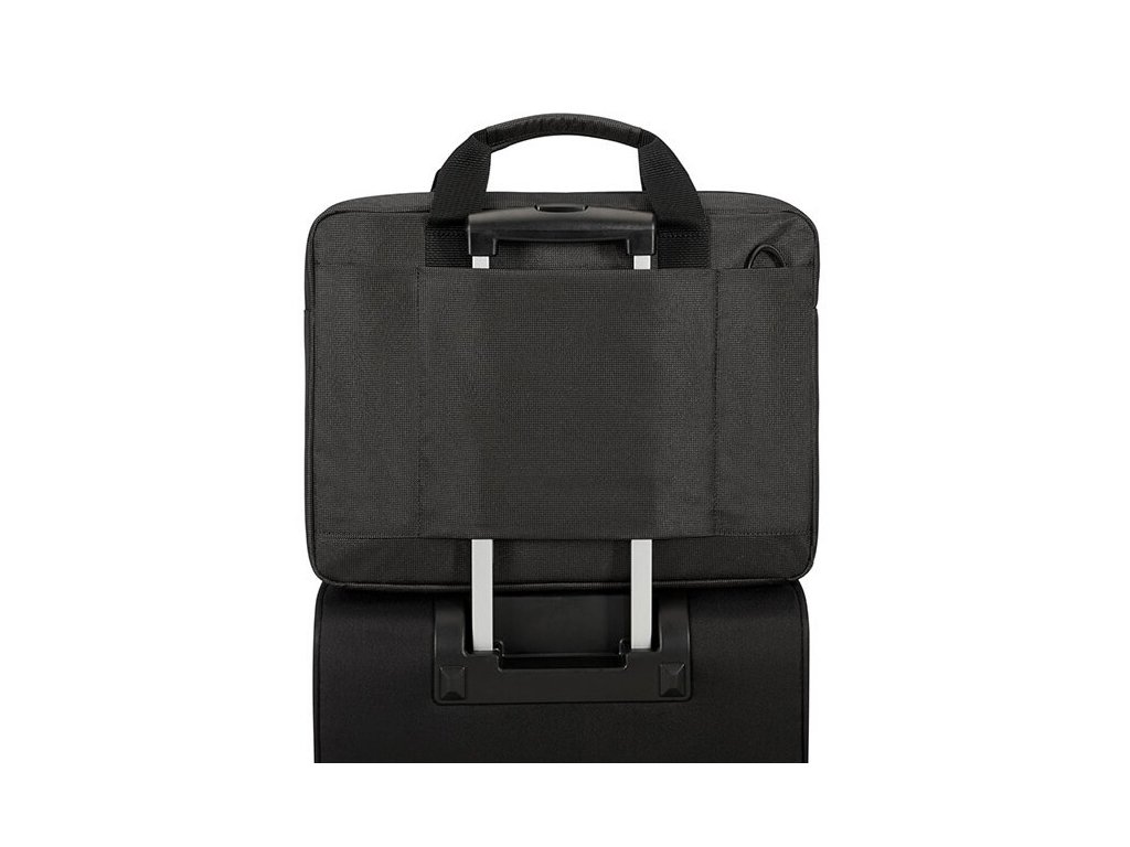 Taška na notebook z kolekcie Network 3 LAPTOP 15,6 "má z prednej strany dve samostatné vrecká na zips. Jedna je menšie a takmer skrytá, druhá - väčšia je opatrená organizérom. V hlavnom priestore tašky je polstrovaný priestor na notebook + tablet, vrecko na zips a vložený / vyberateľný / látkový sáčok (púzdierko) na drobnosti, ktorý ide pripevniť suchým zipsom. Taška má dve ručné ucha a nastaviteľný ramenný popruh. Výhodou je možnosť uzamknutia.
