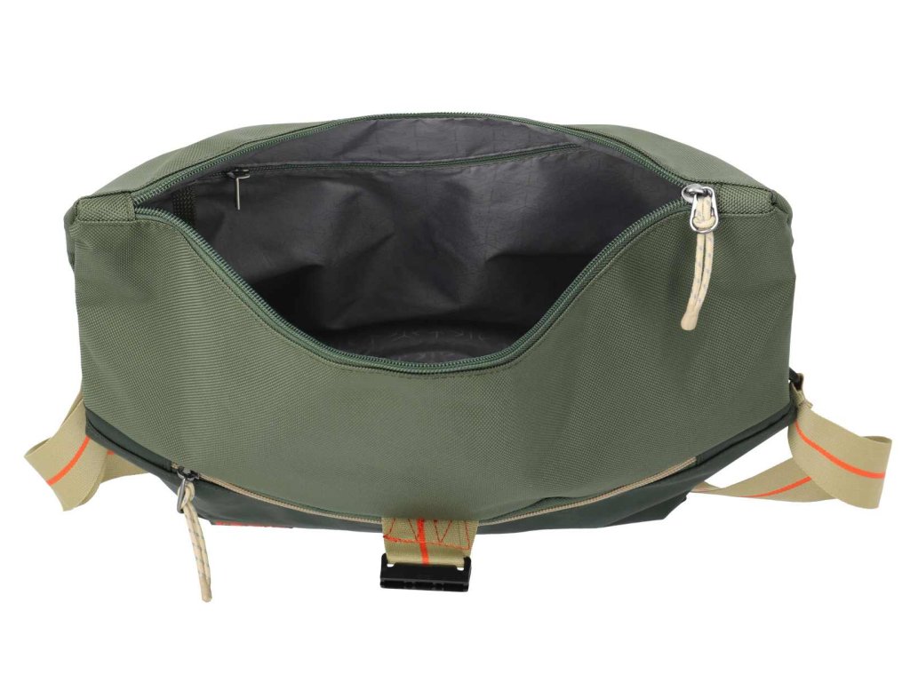 - Hlavné vrecko na zips s rolovacím zatváraním a prackou.