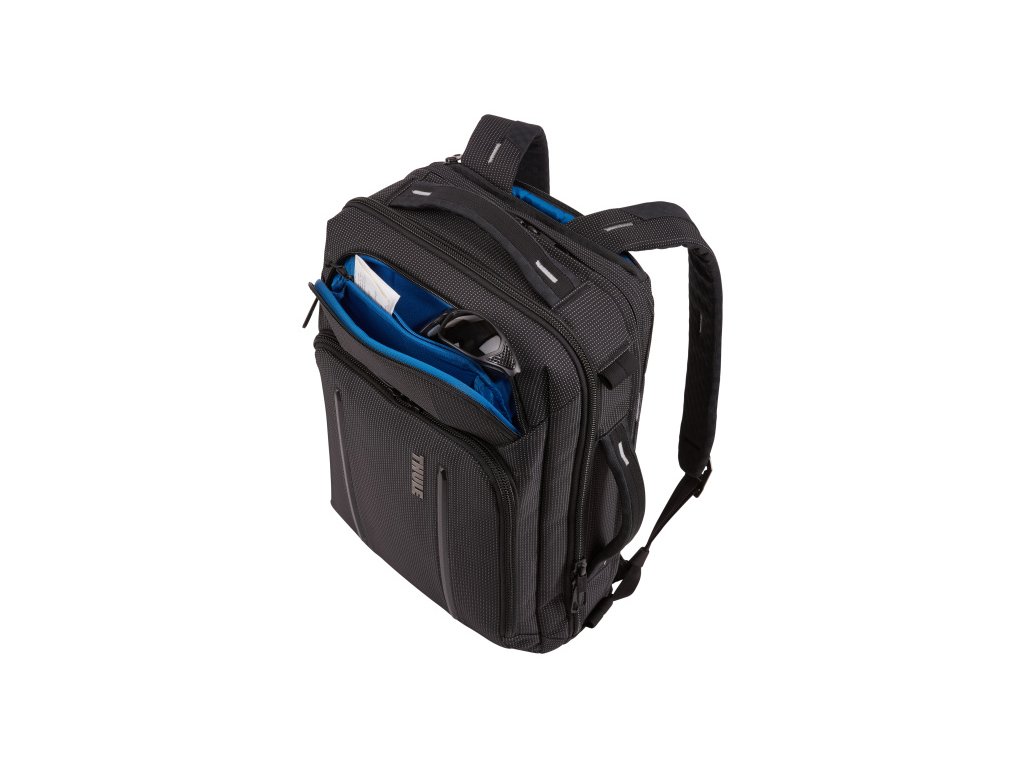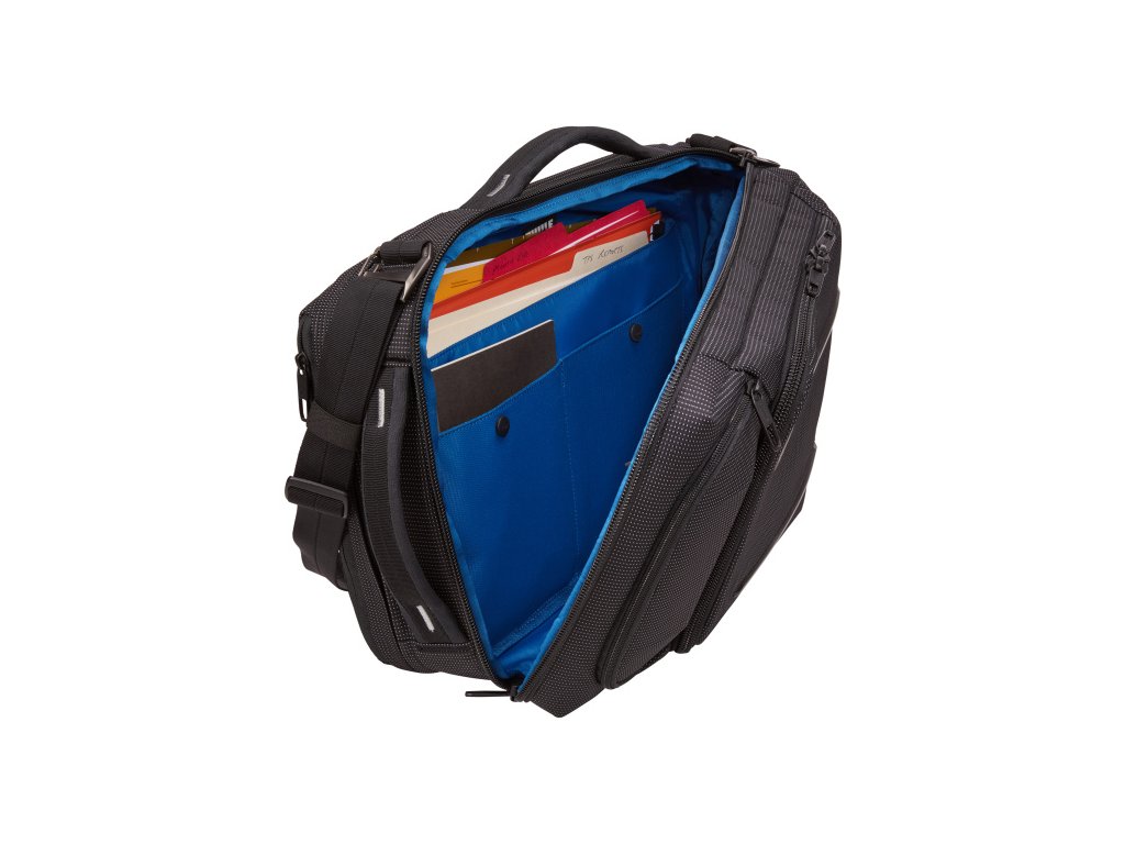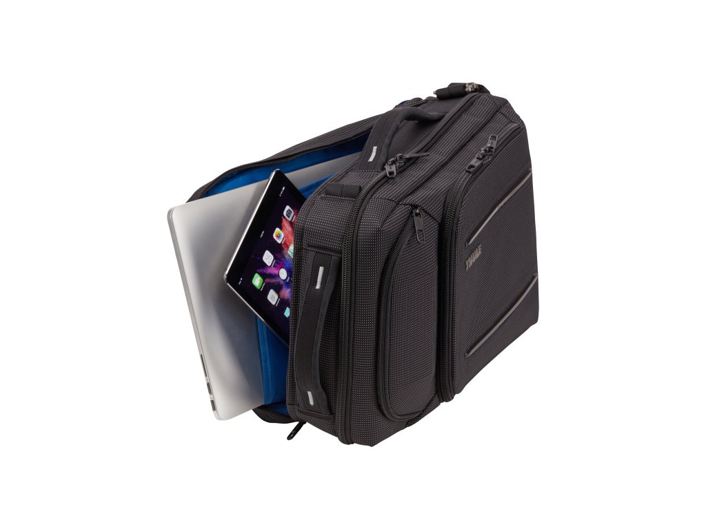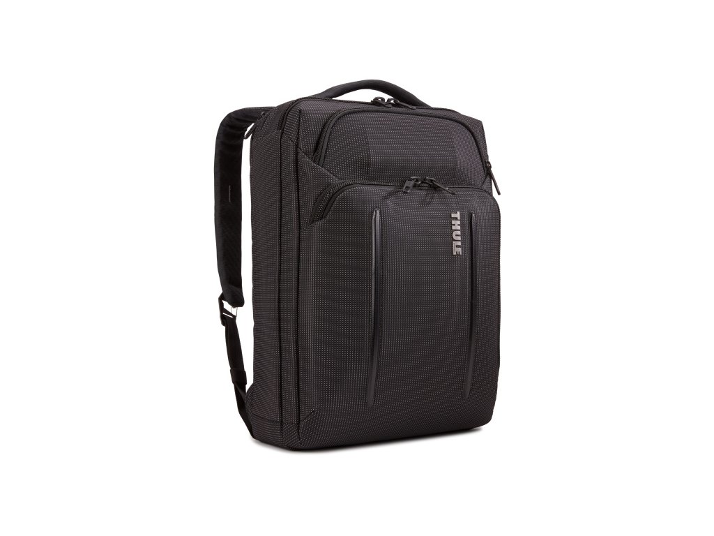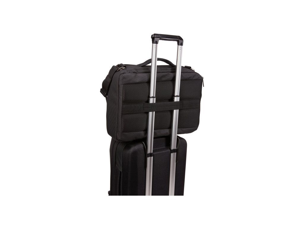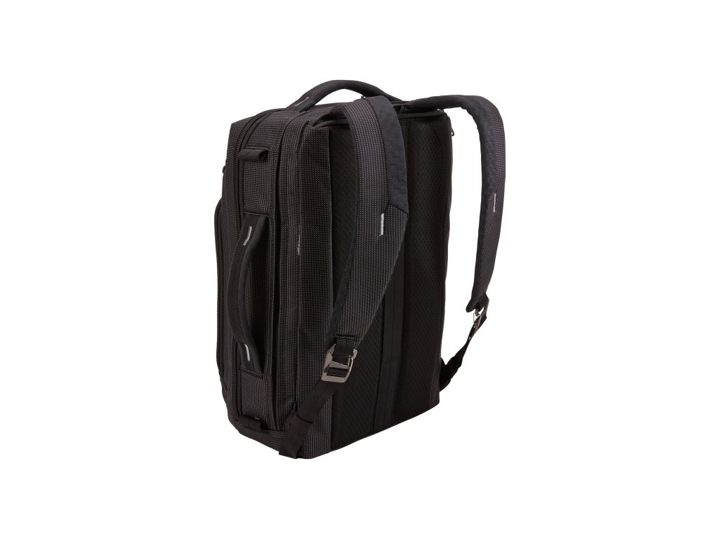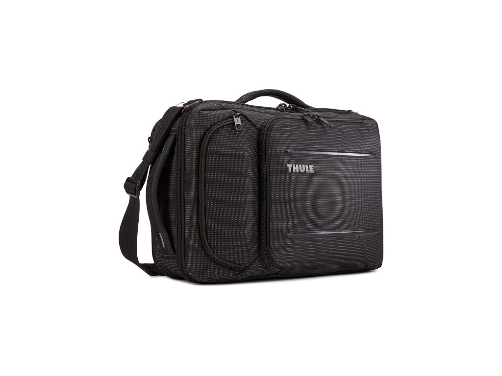 Univerzálna brašňa značky Thule v čiernej farbe, ktorá sa ľahko premení na batoh a výborne sa tak hodí k pohybu po meste aj na cesty.