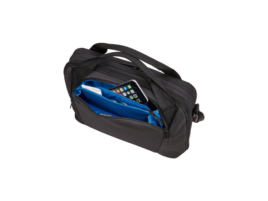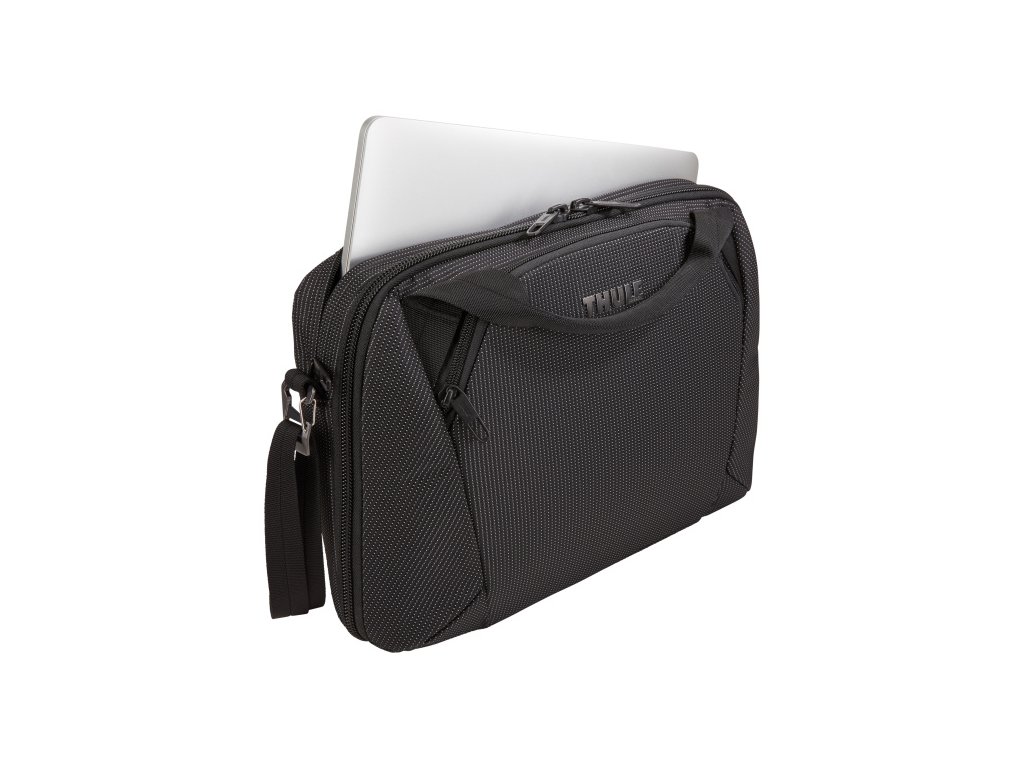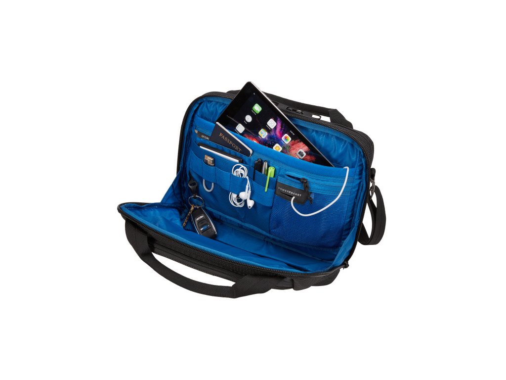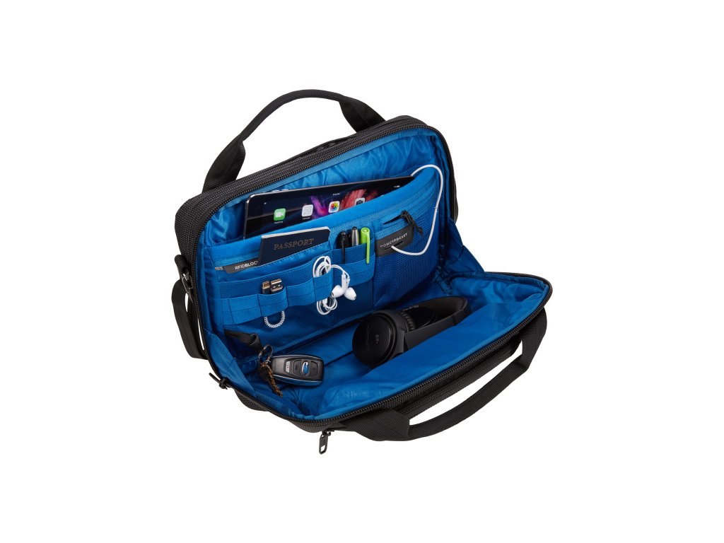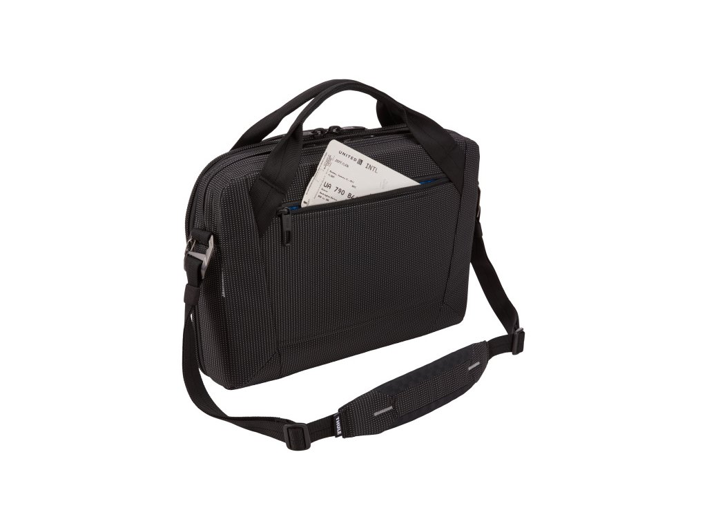 Útlá taška na notebook navržená tak, aby na cestách umožnila vše uspořádat, zpřístupnit a ochránit.