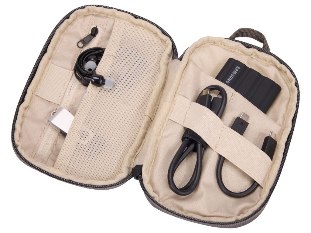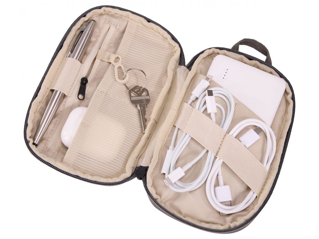 - Usporiadajte si drobné príslušenstvo: Káble, adaptéry, slúchadlá a drobné osobné príslušenstvo môžete usporiadať v rôznych univerzálnych vreckách a elastických pútkach.