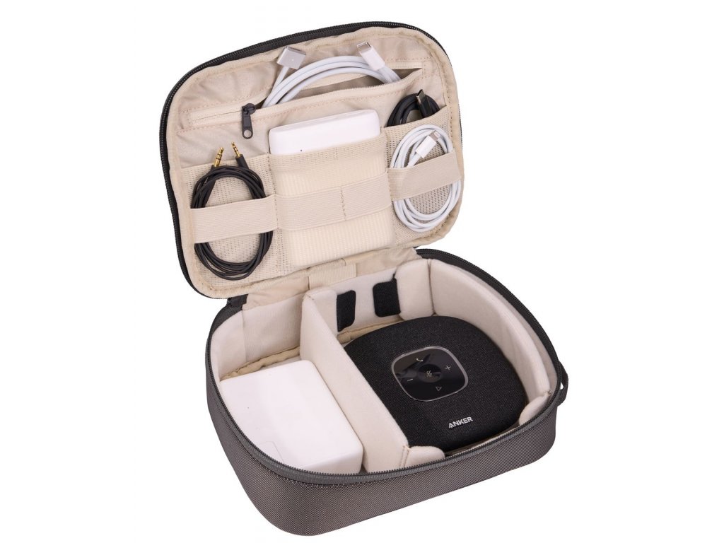 - Usporiadajte si drobné príslušenstvo: Usporiadajte prenosnú nabíjačku, káble a príslušenstvo v rôznych bezpečných vreckách a elastických pútkach.
