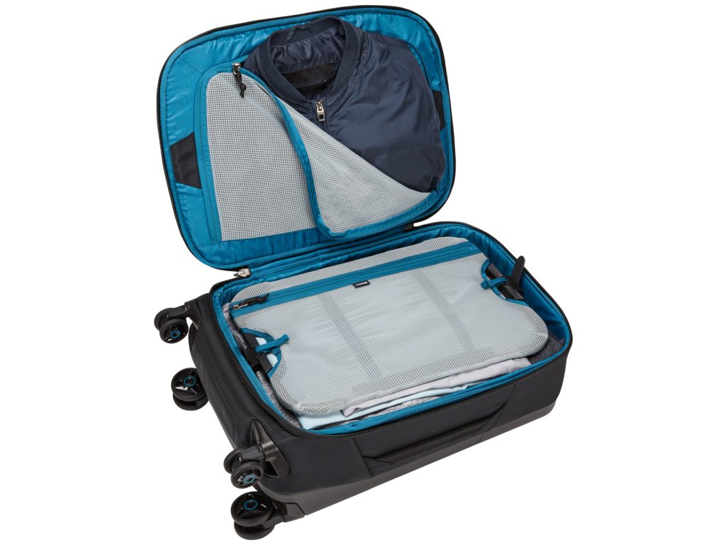 Elegantný a odolný príručný kufor značky Thule Subterra, 55 cm, s natáčacími kolieskami a s kompresným panelom, ktorý efektívne využíva úložný priestor na maximum a obmedzuje pokrčeniu oblečenia na minimum.