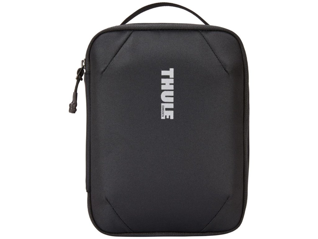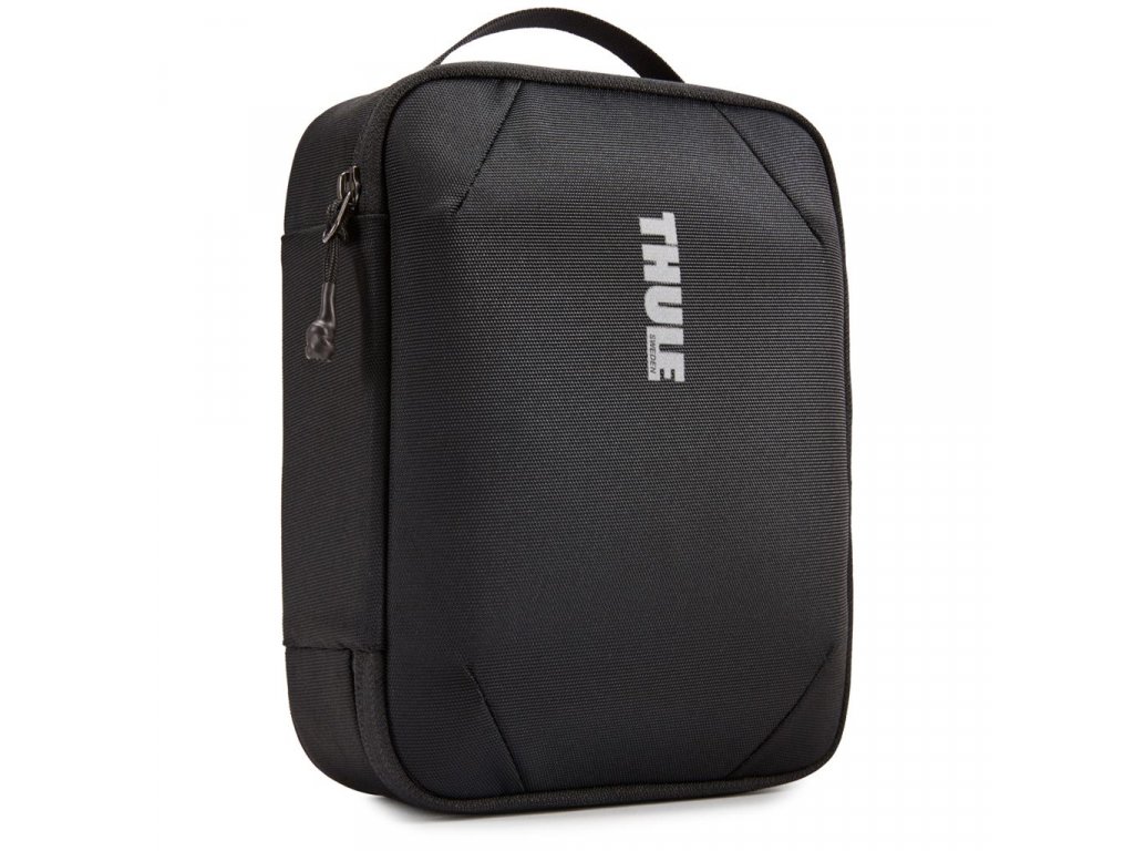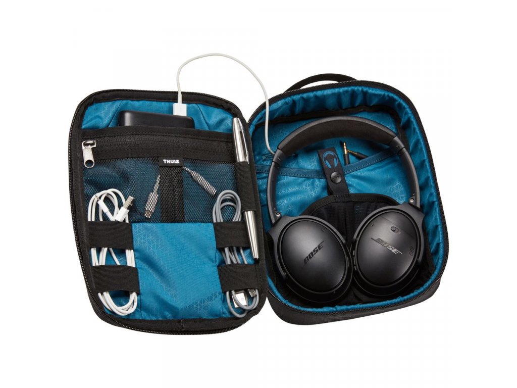 Púzdro Thule Subterra Power Shuttle v čiernej farbe. Cestovné púzdro na elektroniku navrhnuté pre ochranu a uloženie všetkého od veľkých slúchadiel po malé káble.