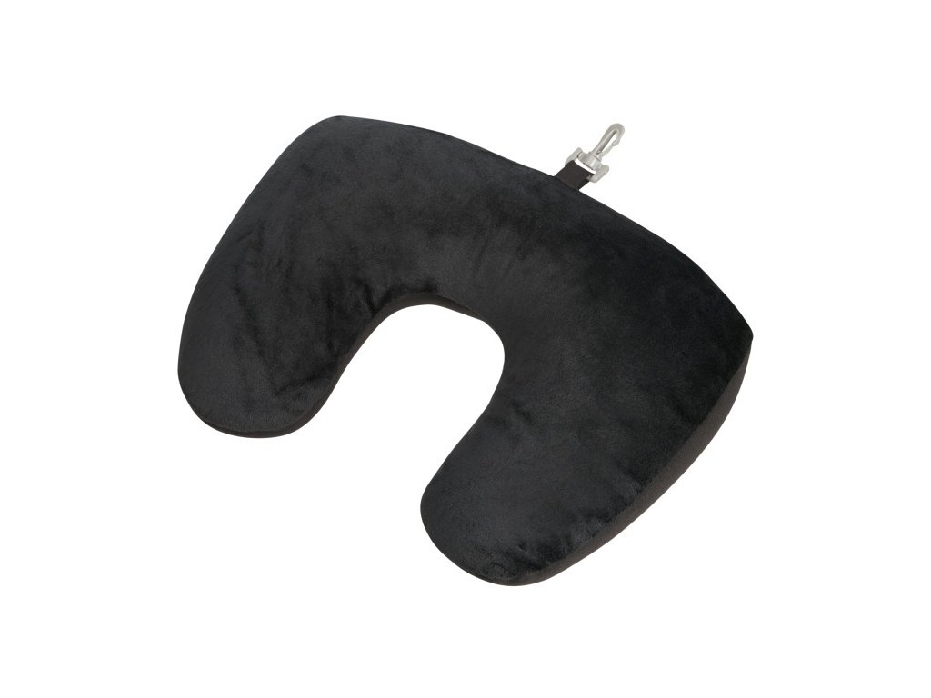 Cestovný vankúšik značky Samsonite v čiernej farbe, ktorý pomáha predchádzať stuhnutiu a nárastu tlaku v lietadlách, vlakoch a autách.